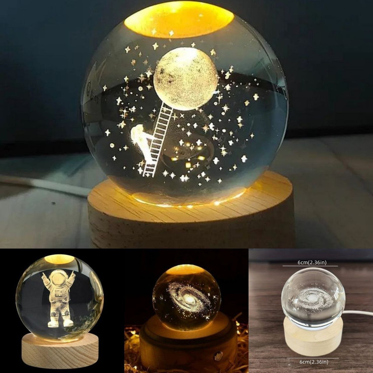 گوی کریستالی با طرحهای فضایی قطر ۶ سانت تک جعبه با چراغ ال ای دی