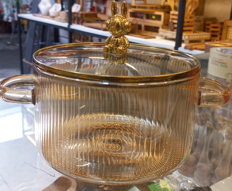 جنس از پیرکس درجه یک به رنگ شامپاین بوده که با قابلیت شعله مستقیم حسی عالی را هنگام پخت غذا به شما هدیه میدهد.هنگام پخت غذا در این قابلمه خاص مرحله به مرحله پخت غذا را بدون آنکه نیاز به برداشتن درب باشد میتوانید رصد نمایید