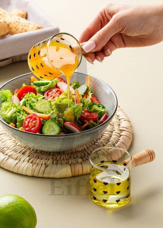 سس خوری بلور با طرح قلب و دسته چوبی حجم اندازه یک استکان معمولی چای خوری